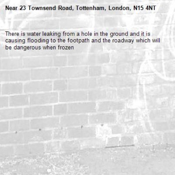 There is water leaking from a hole in the ground and it is causing flooding to the footpath and the roadway which will be dangerous when frozen