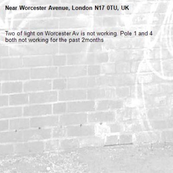 Two of light on Worcester Av is not working. Pole 1 and 4 both not working for the past 2months