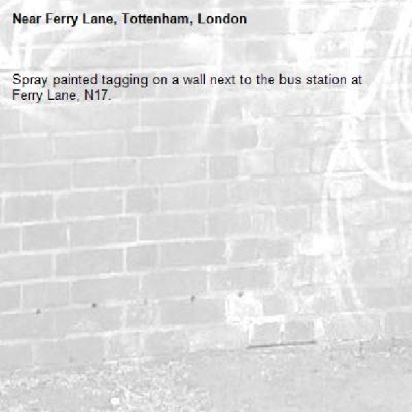 Spray painted tagging on a wall next to the bus station at Ferry Lane, N17.