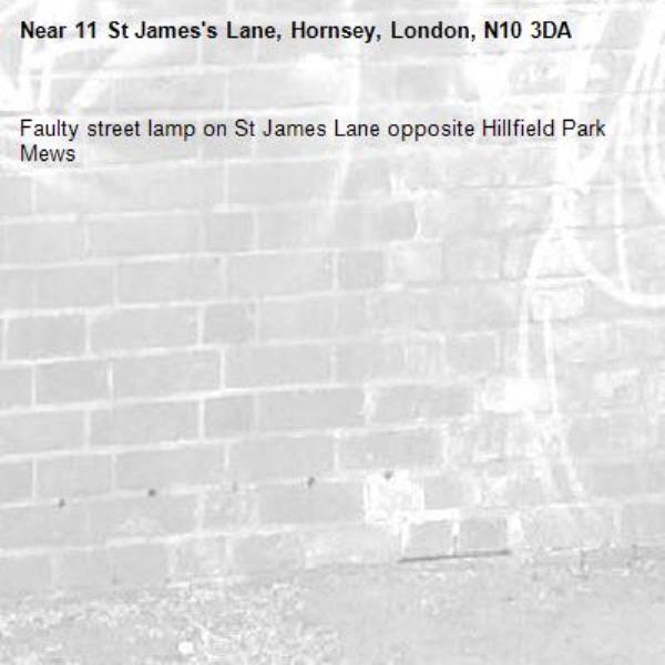 Faulty street lamp on St James Lane opposite Hillfield Park Mews