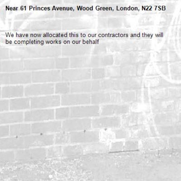 We have now allocated this to our contractors and they will be completing works on our behalf-61 Princes Avenue, Wood Green, London, N22 7SB 13/11/2025 08:39 We have now allocated this to our contractors and they will be completing works on our behalf