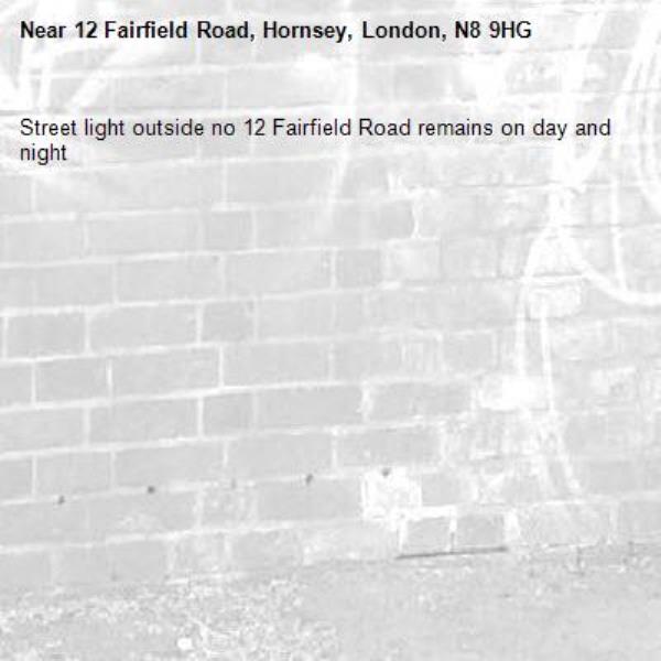 Street light outside no 12 Fairfield Road remains on day and night