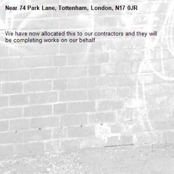 We have now allocated this to our contractors and they will be completing works on our behalf-74 Park Lane, Tottenham, London, N17 0JR 15/04/2026 09:18 We have now allocated this to our contractors and they will be completing works on our behalf