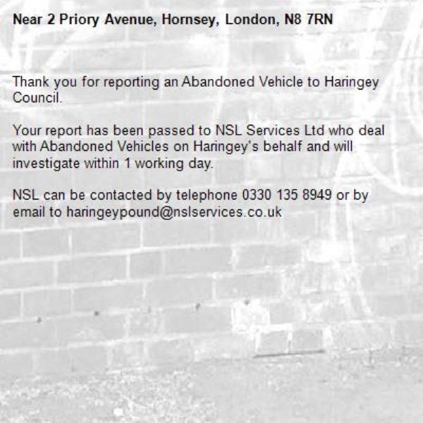 Near 2 Priory Avenue, Hornsey, London, N8 7RN