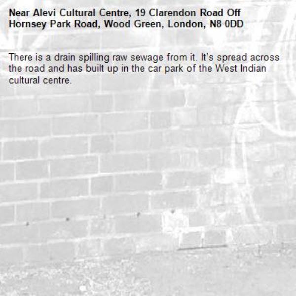 There is a drain spilling raw sewage from it. It’s spread across the road and has built up in the car park of the West Indian cultural centre.