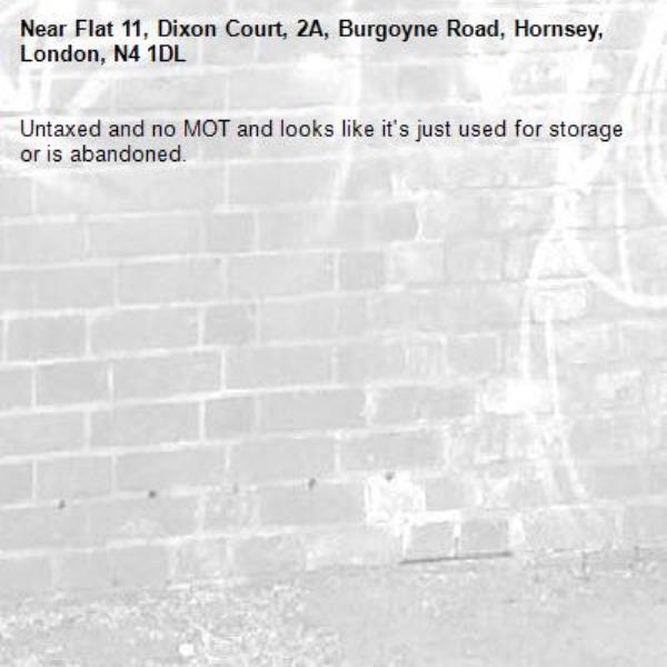 Untaxed and no MOT and looks like it's just used for storage or is abandoned.