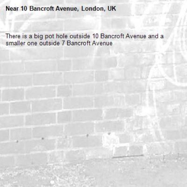 There is a big pot hole outside 10 Bancroft Avenue and a smaller one outside 7 Bancroft Avenue