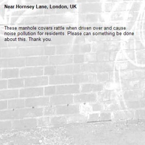These manhole covers rattle when driven over and cause noise pollution for residents. Please can something be done about this. Thank you.