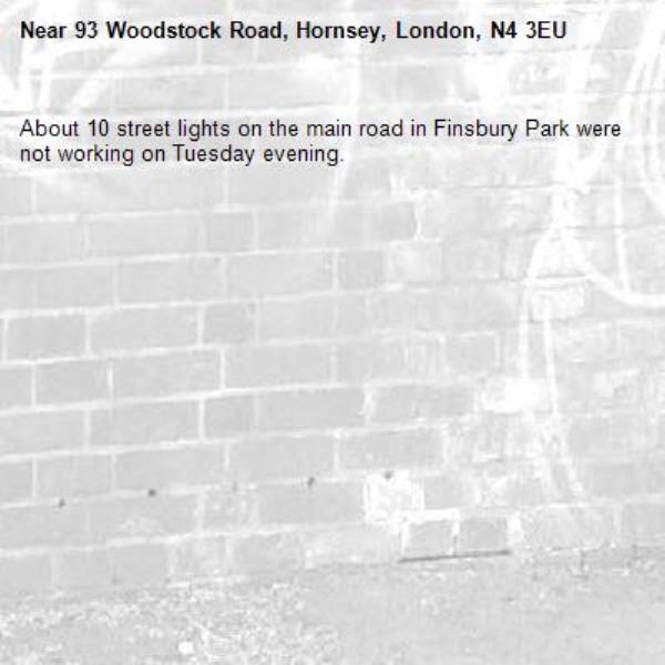 About 10 street lights on the main road in Finsbury Park were not working on Tuesday evening.