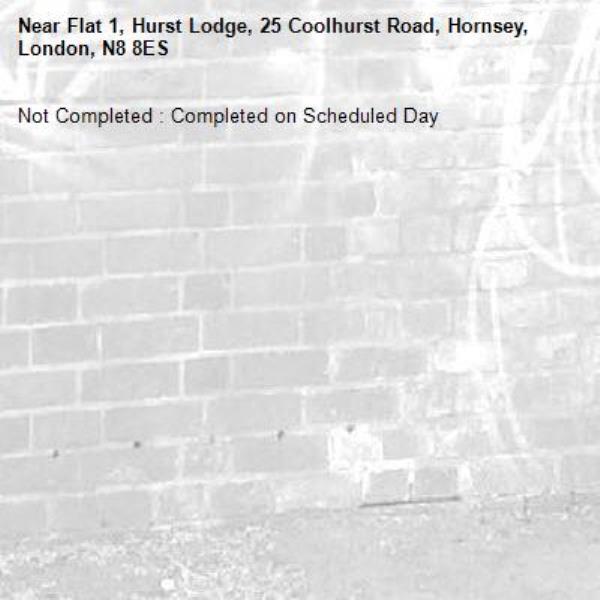 -Flat 1, Hurst Lodge, 25 Coolhurst Road, Hornsey, London, N8 8ES 12/11/2025 20:03 Not Completed : Completed on Scheduled Day