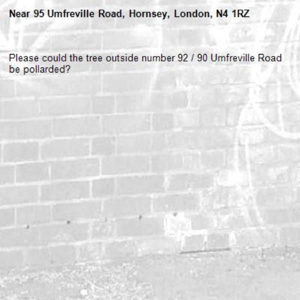 Please could the tree outside number 92 / 90 Umfreville Road be pollarded?