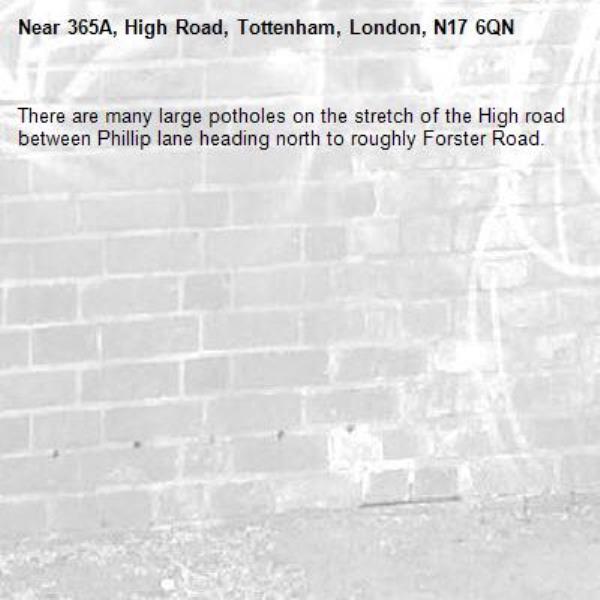 There are many large potholes on the stretch of the High road between Phillip lane heading north to roughly Forster Road.
