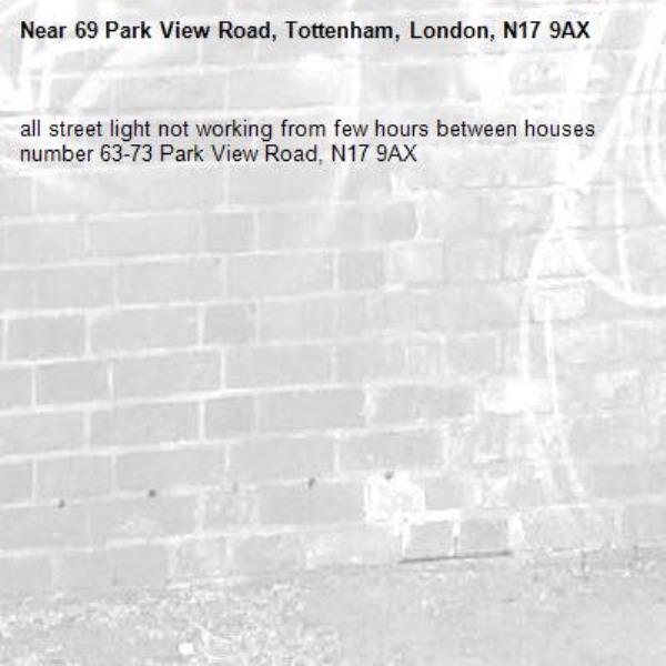 all street light not working from few hours between houses number 63-73 Park View Road, N17 9AX