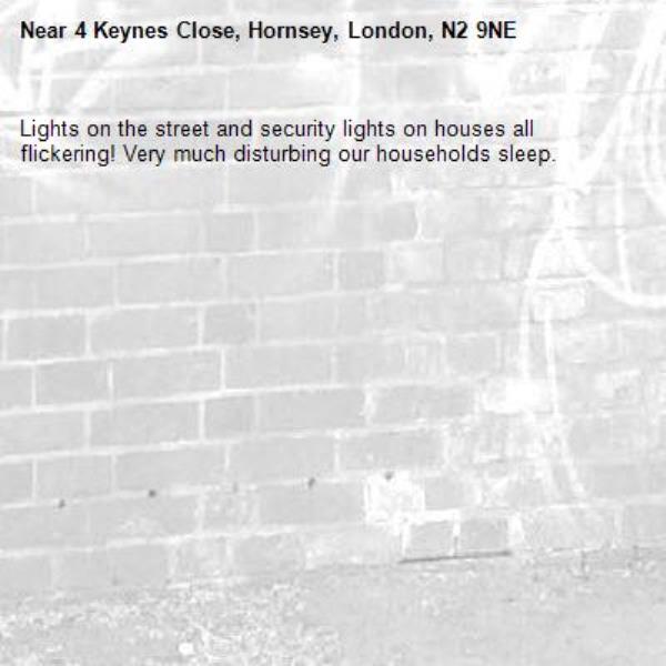 Lights on the street and security lights on houses all flickering! Very much disturbing our households sleep.
