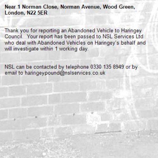 Near 1 Norman Close, Norman Avenue, Wood Green, London, N22 5ER