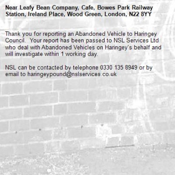 Near Leafy Bean Company, Cafe, Bowes Park Railway Station, Ireland Place, Wood Green, London, N22 8YY