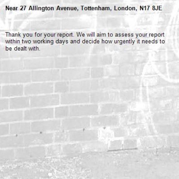 Near 27 Allington Avenue, Tottenham, London, N17 8JE
