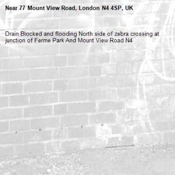Drain Blocked and flooding North side of zebra crossing at junction of Ferme Park And Mount View Road N4